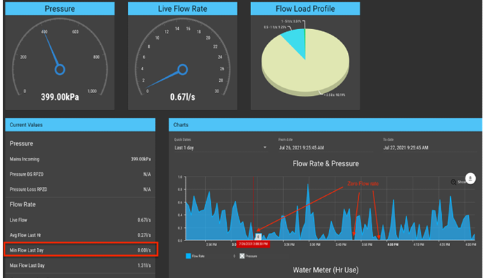 Monitoring software showing the flow of water in the isolated pipe work.